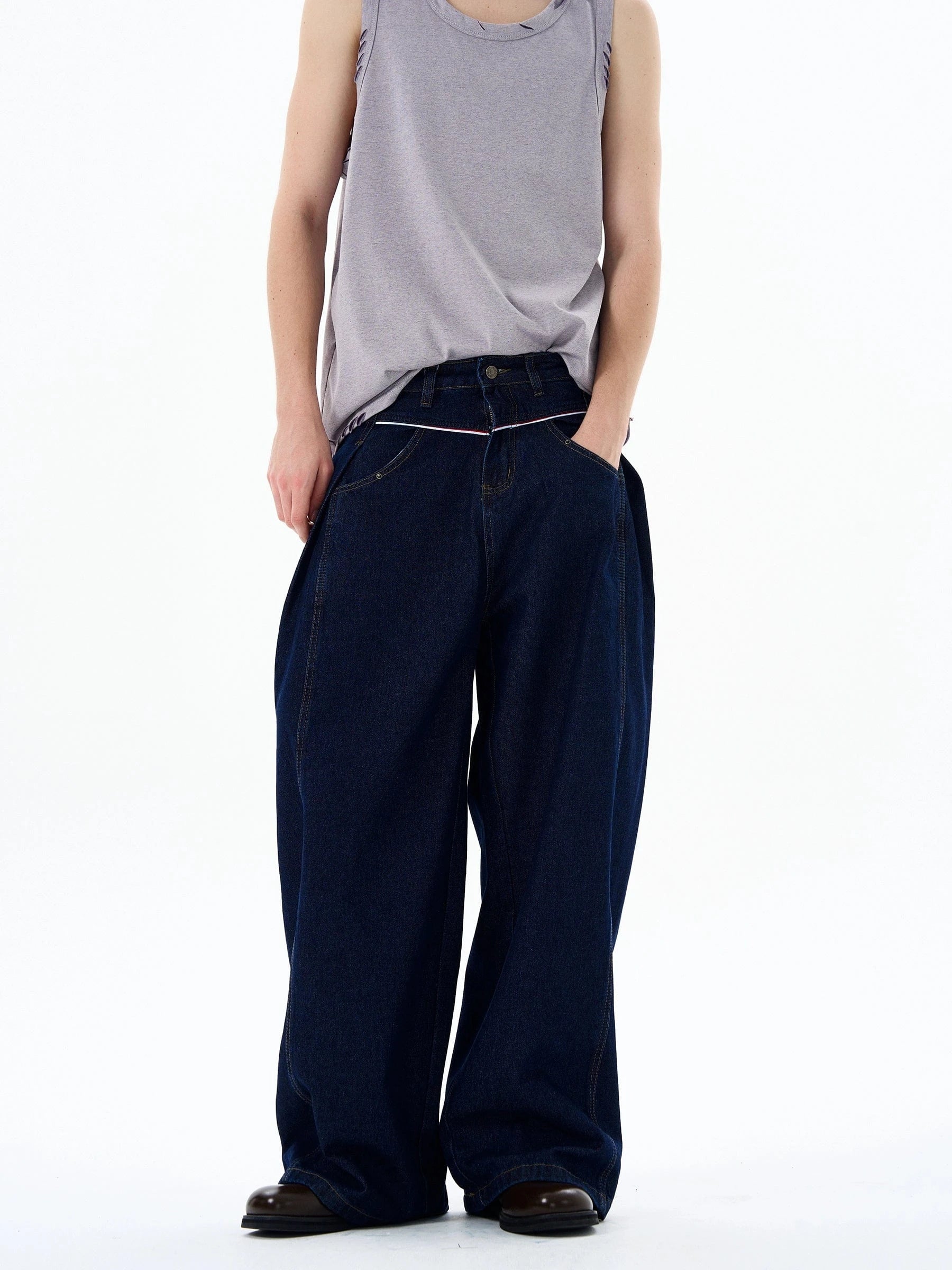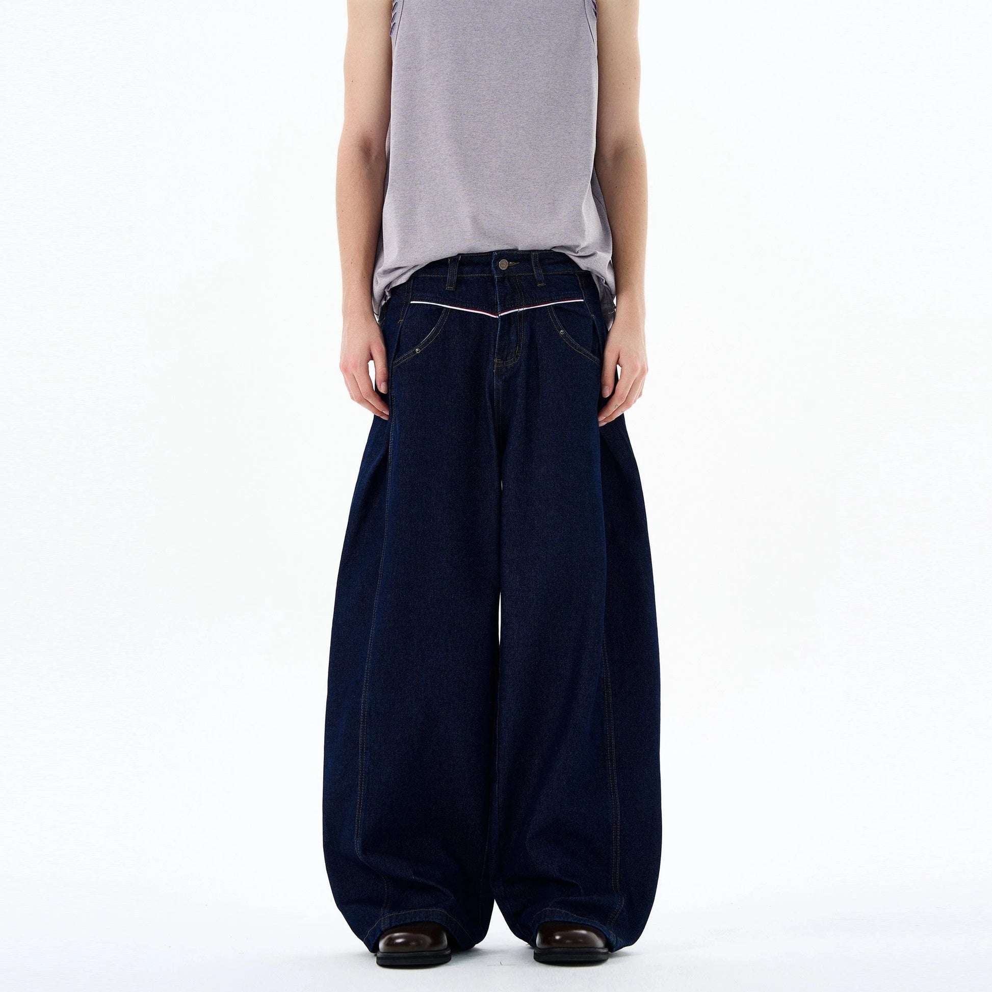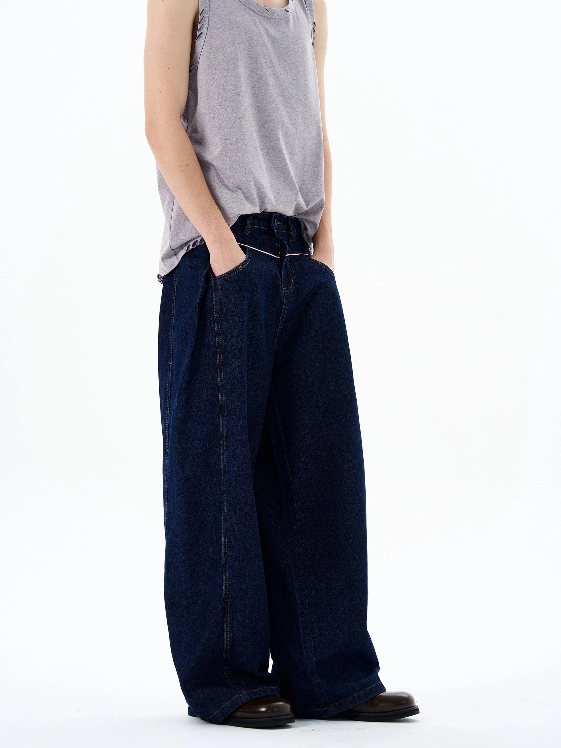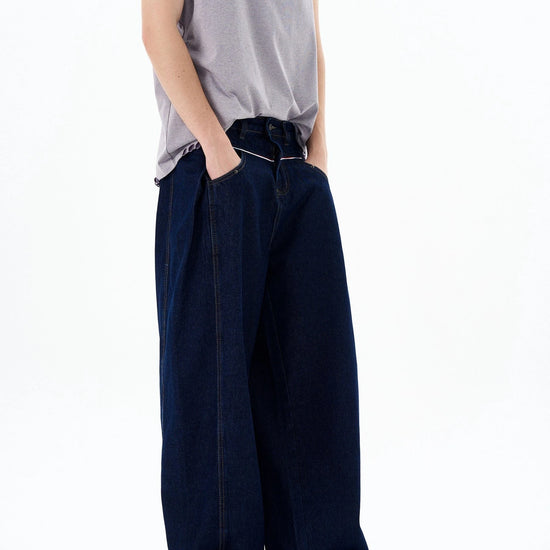RT No. 19574 PLEATED BAGGY STRAIGHT DENIM JEANS