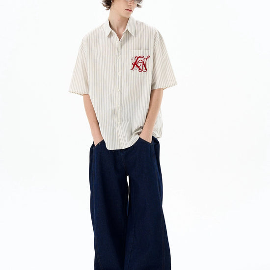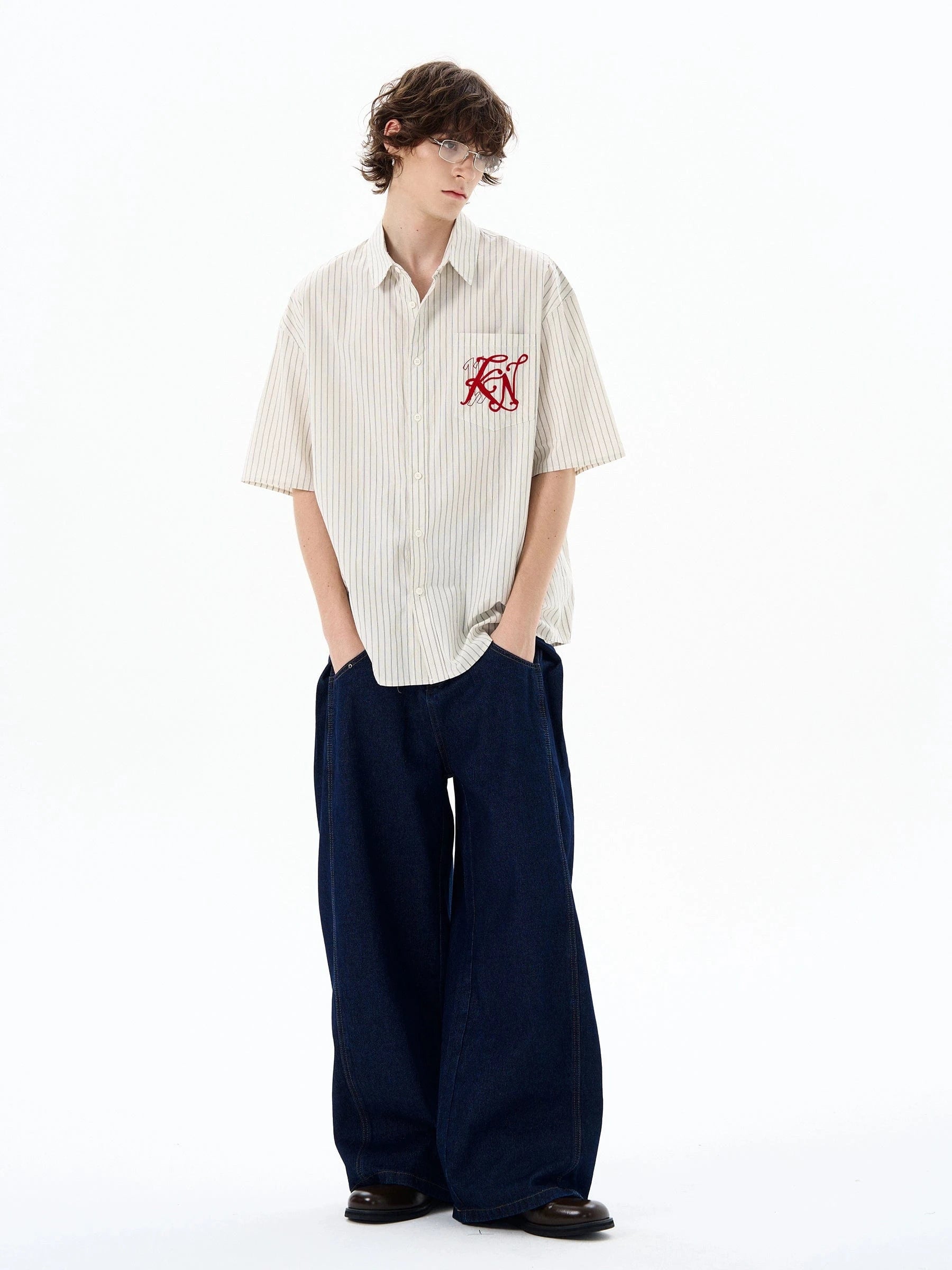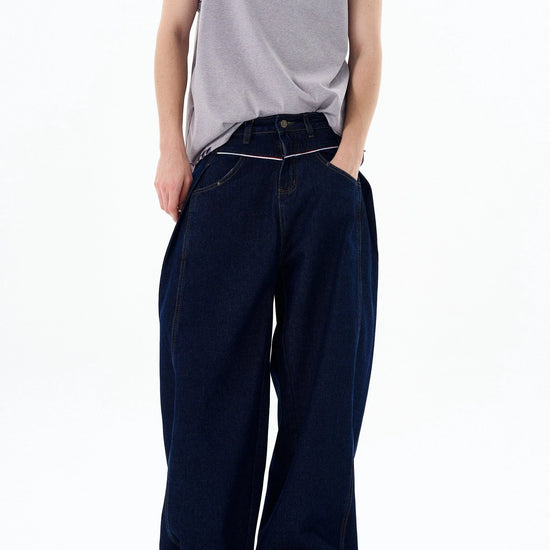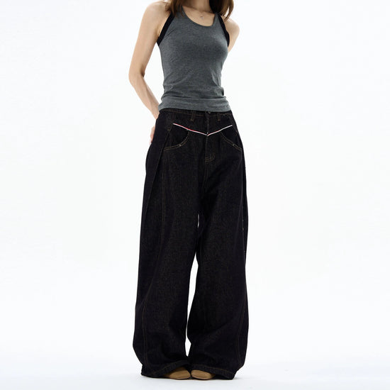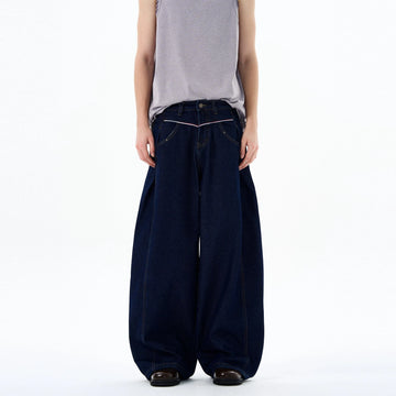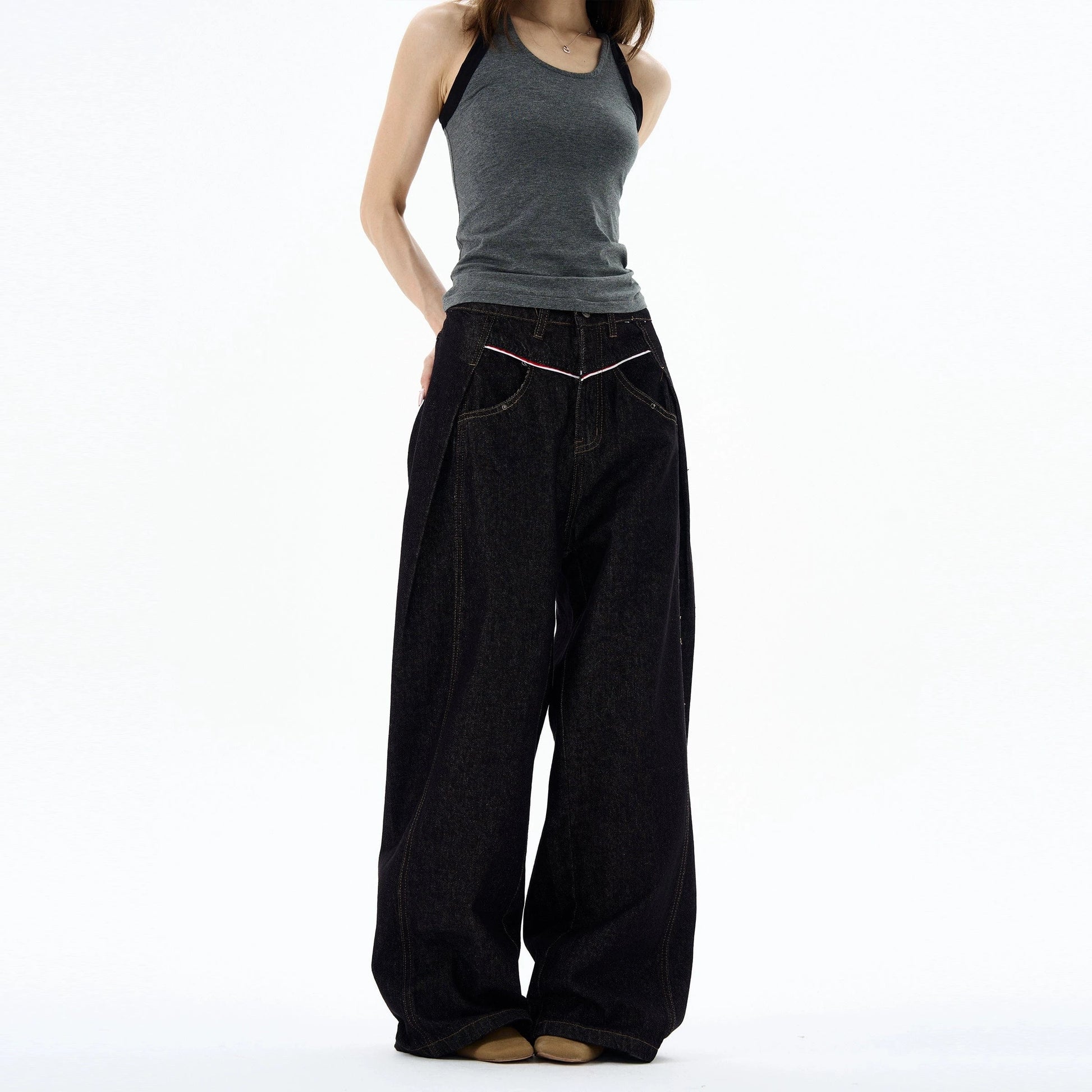 RT No. 19574 PLEATED BAGGY STRAIGHT DENIM JEANS