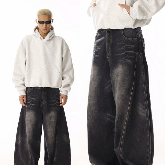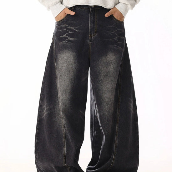 RT No. 19808 BLACK WHISKER BAGGY DENIM JEANS