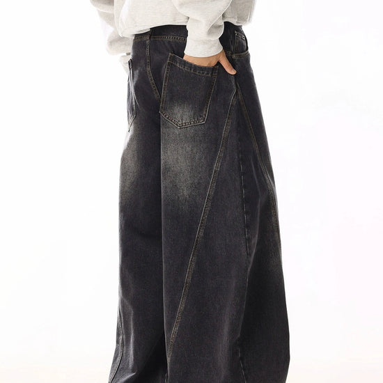 RT No. 7002 WASHED BLACK WIDE STRAIGHT DENIM JEANS