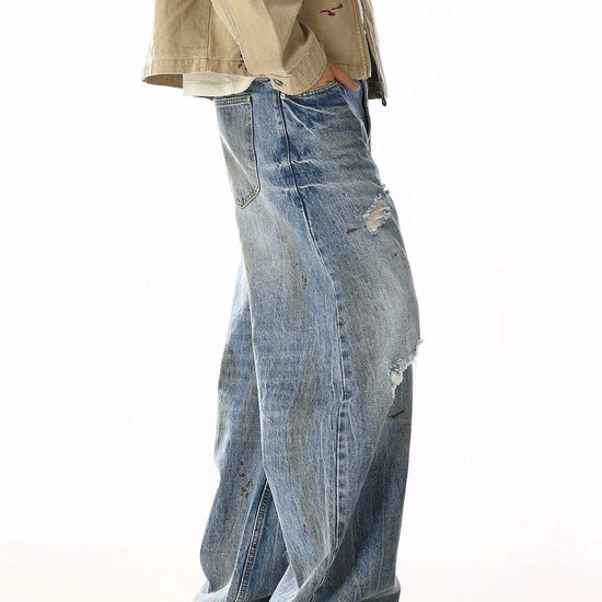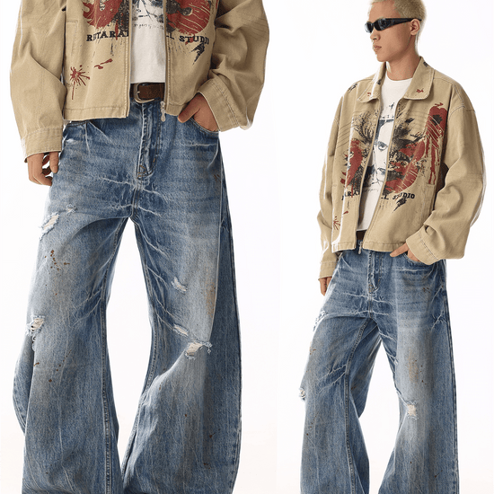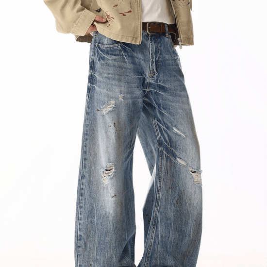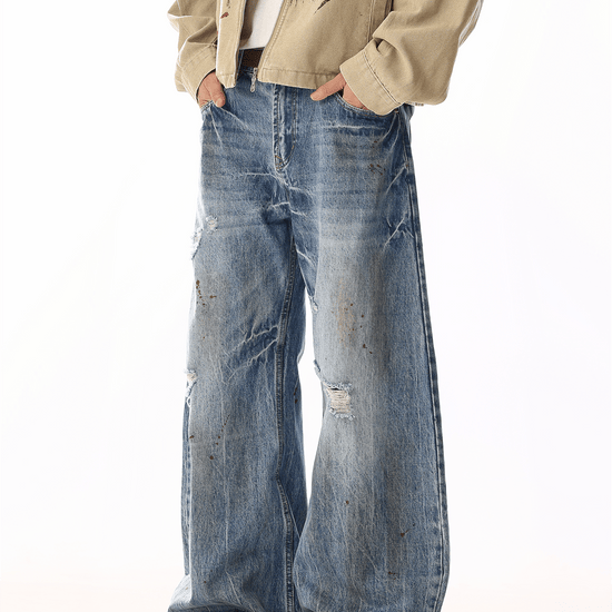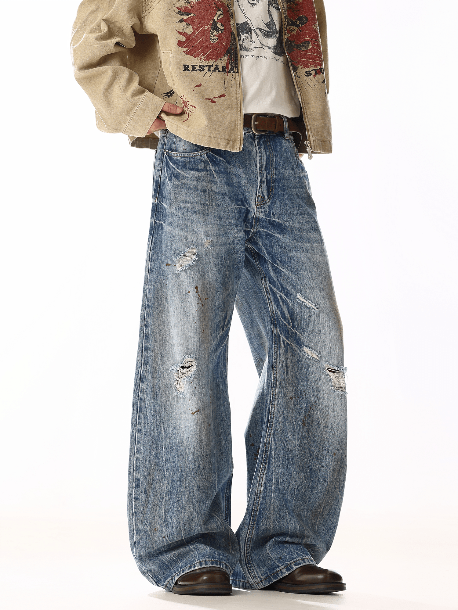 These jeans feature a wide style with a straight fit through the leg, delivering relaxed comfort without sacrificing a sharp, put-together look. The distressed detailing adds character that works across casual outfits.