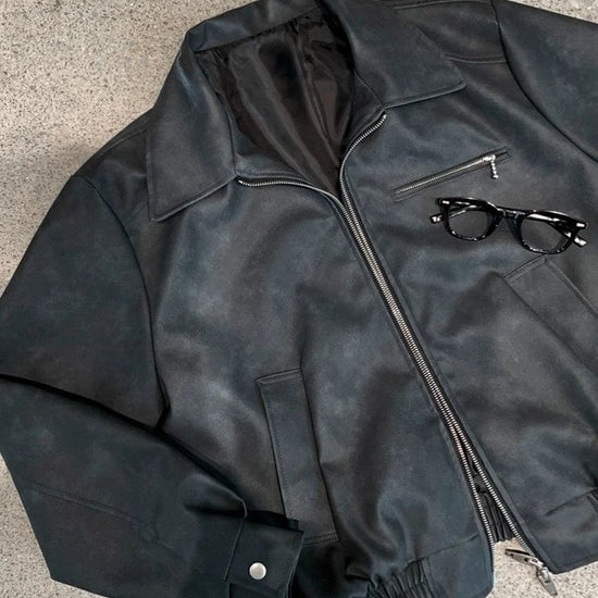 RT No. 10042 LEATHER ZIP-UP JACKET