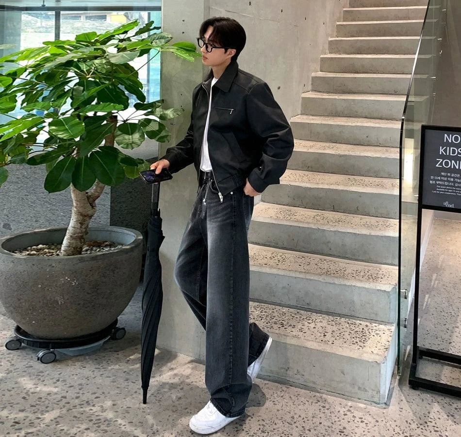 RT No. 7002 WASHED BLACK WIDE STRAIGHT DENIM JEANS