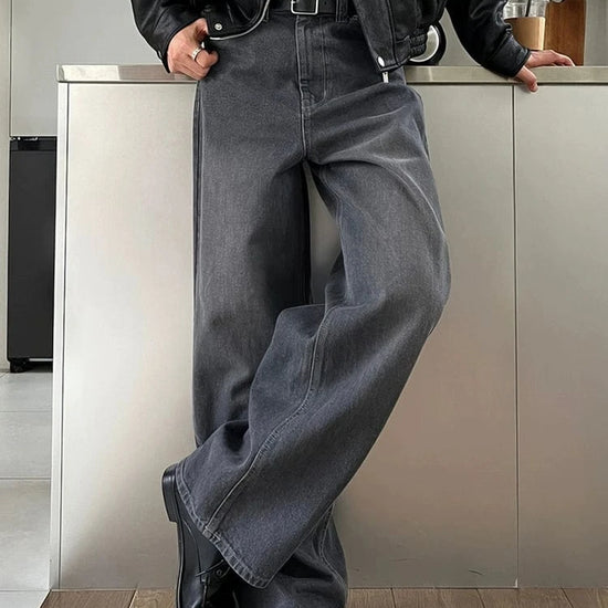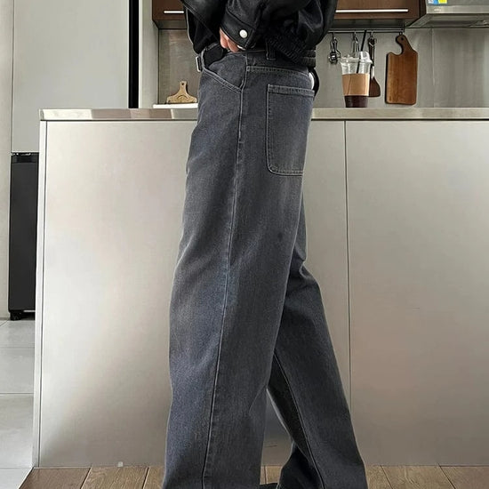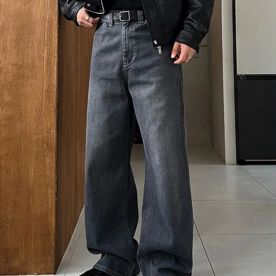RT No. 7002 WASHED BLACK WIDE STRAIGHT DENIM JEANS