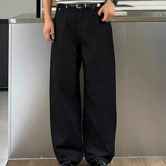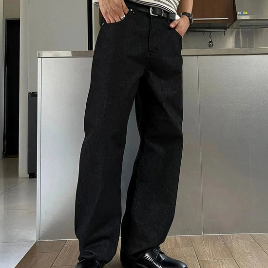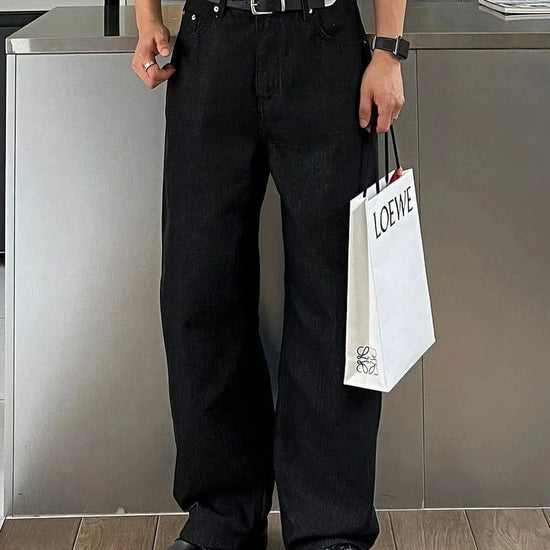 RT No. 7002 WASHED BLACK WIDE STRAIGHT DENIM JEANS