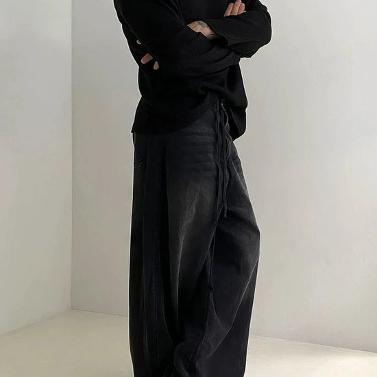RT No. 7002 WASHED BLACK WIDE STRAIGHT DENIM JEANS