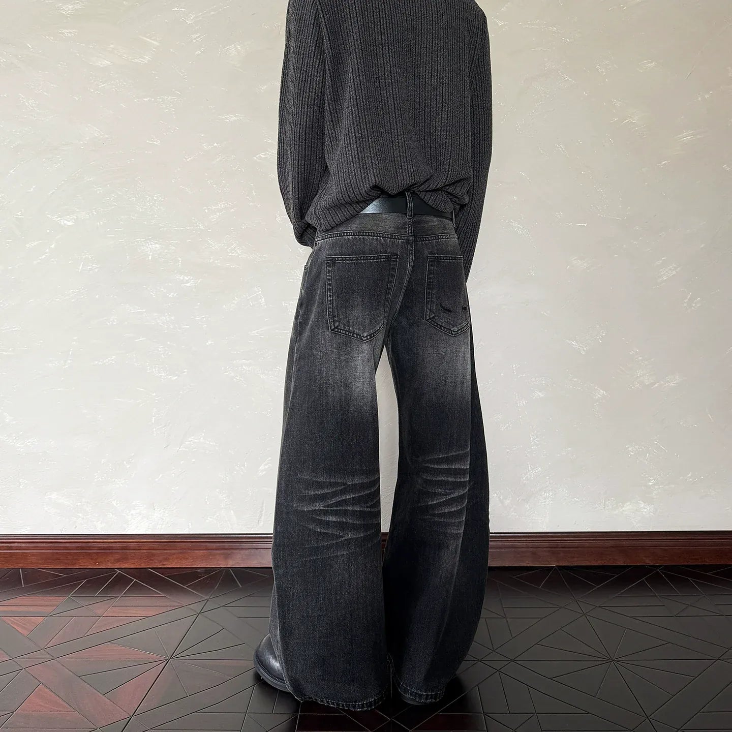 RT No. 7002 WASHED BLACK WIDE STRAIGHT DENIM JEANS