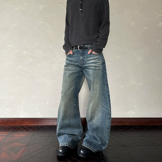 RT No. 32016 WHISKER WASH WIDE STRAIGHT JEANS