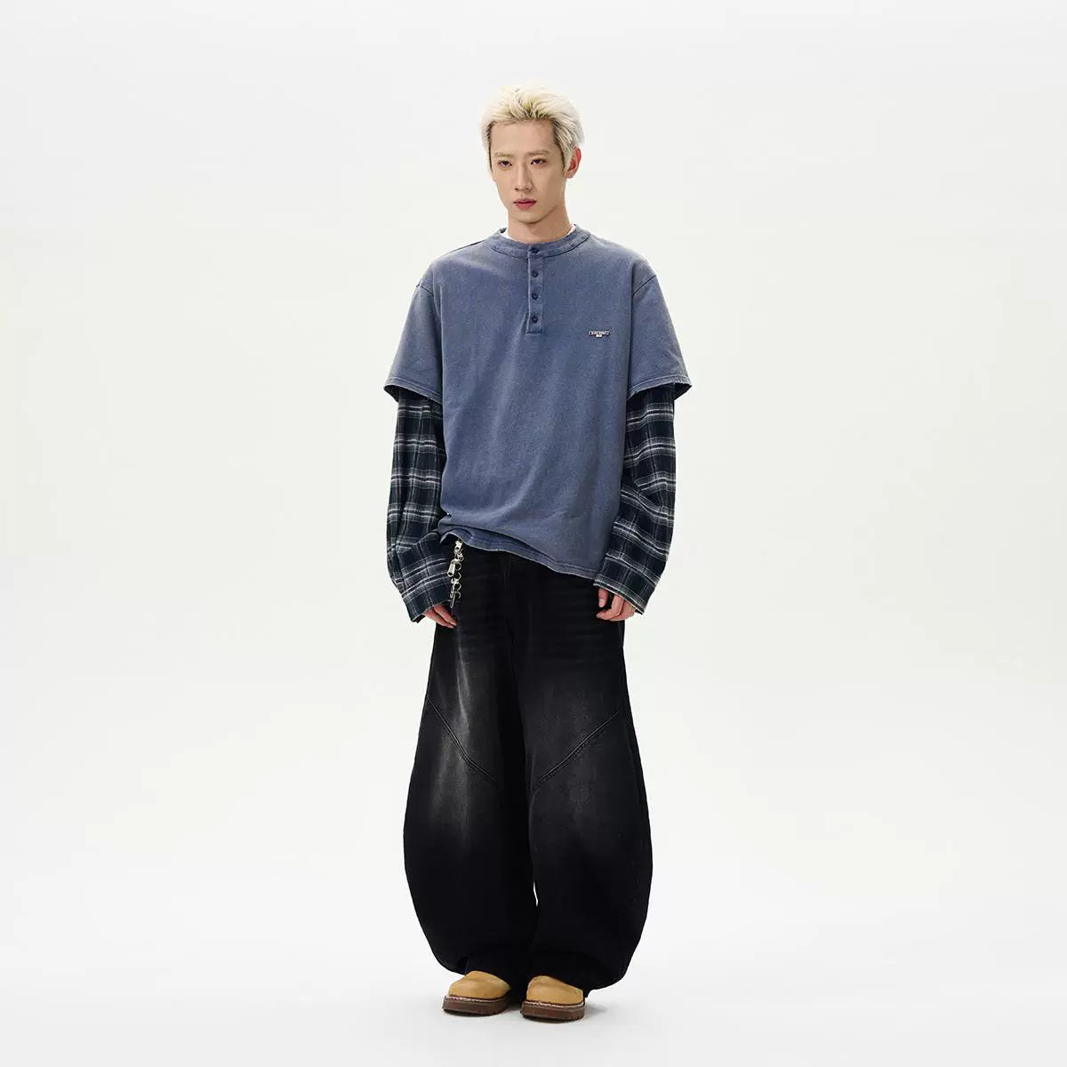 RT No. 7002 WASHED BLACK WIDE STRAIGHT DENIM JEANS