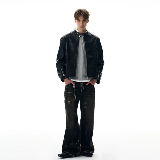 RT No. 40765 KUKI SILHOUETTE CROPPED ZIPPER JACKET