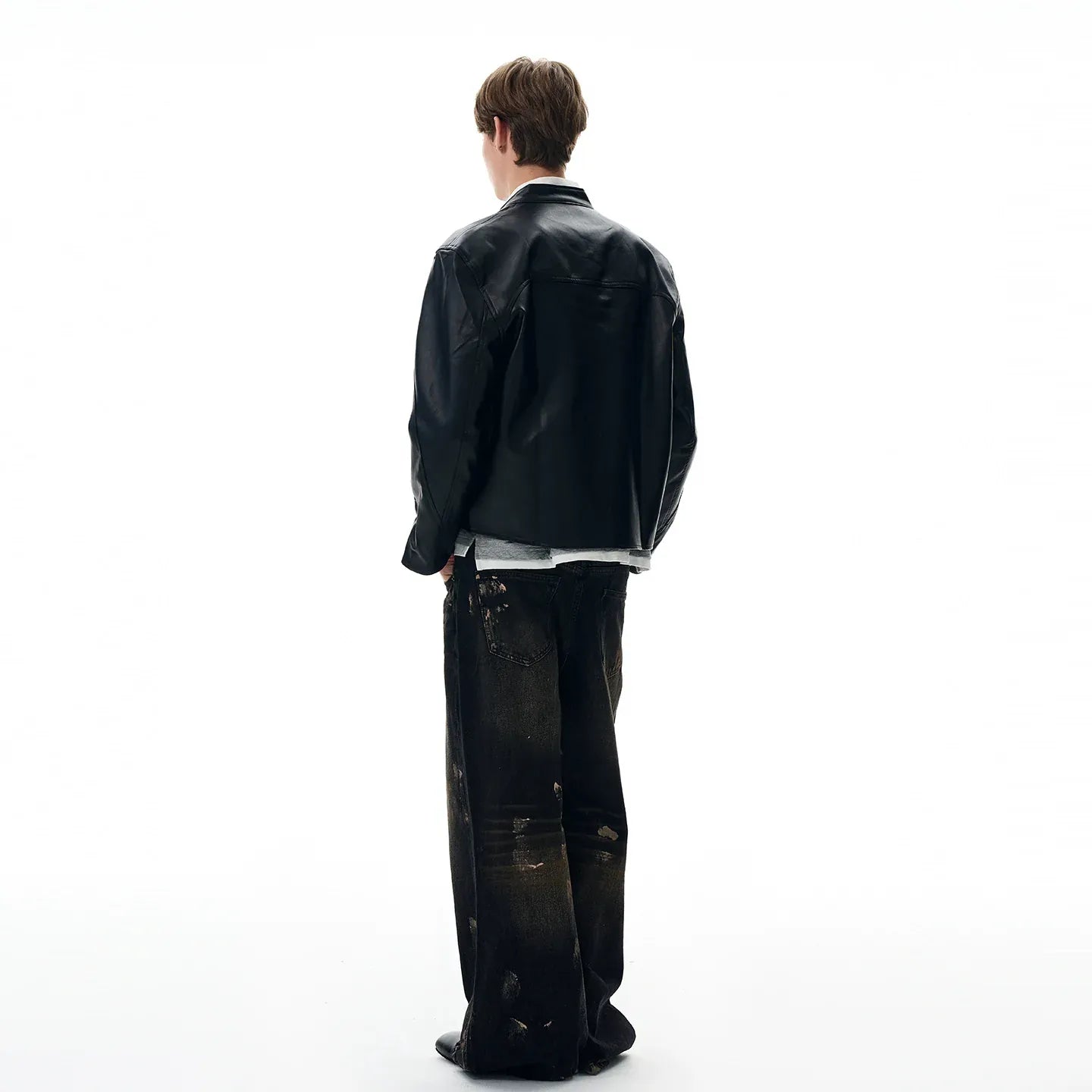 RT No. 7002 WASHED BLACK WIDE STRAIGHT DENIM JEANS