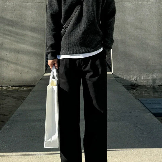 RT No. 9238 BLACK FOLDED STRAIGHT PANTS
