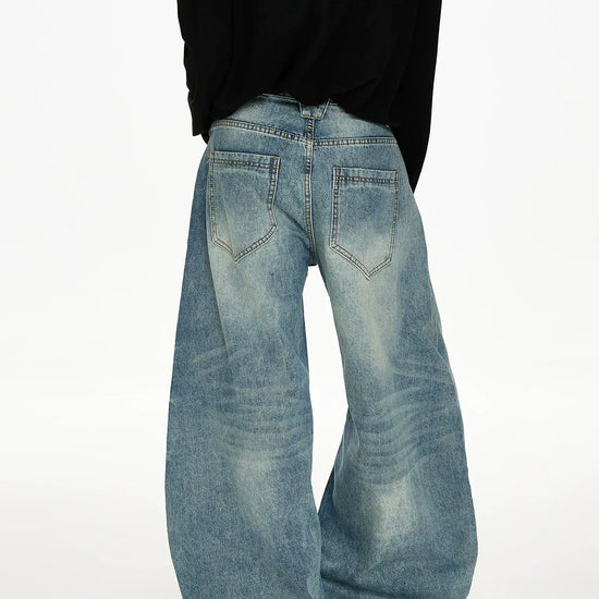 RT No. 12059 WASHED BLUE RELAX STRAIGHT DENIM JEANS