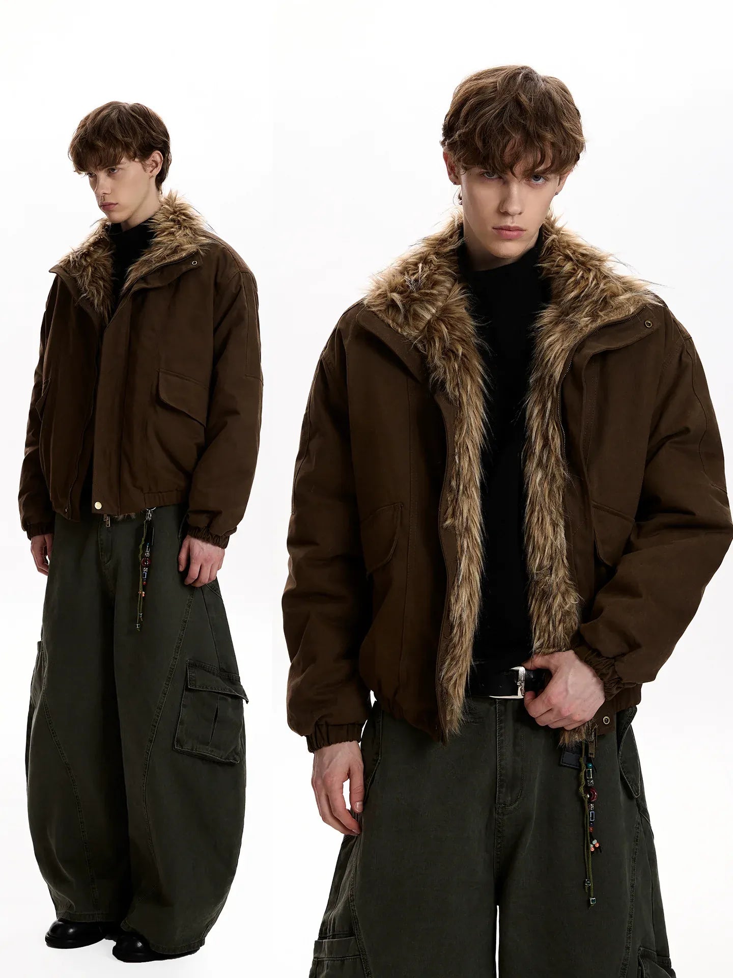 RT No. 50038 DARK BROWN WOLF COLLAR JACKET