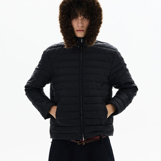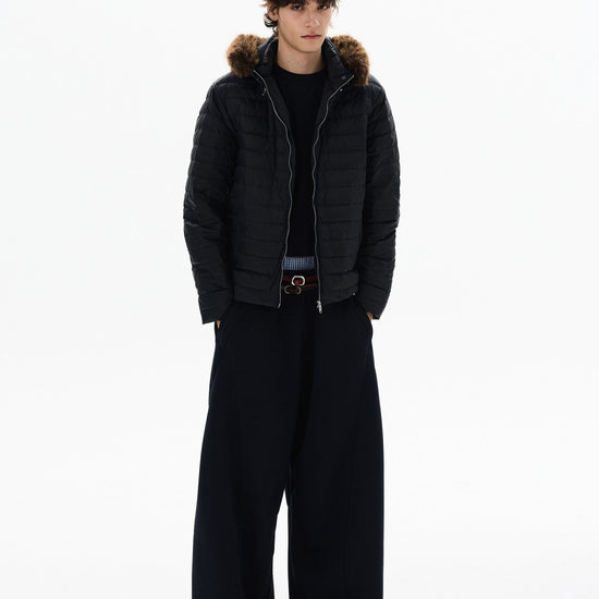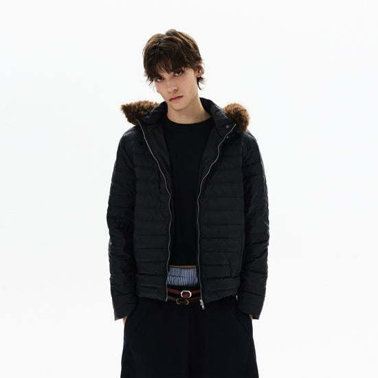 RT No. 50410 FUR HOOD RIBBED PUFFER JACKET