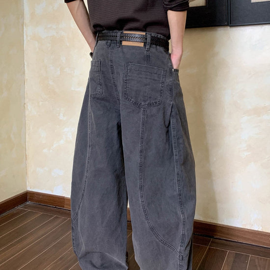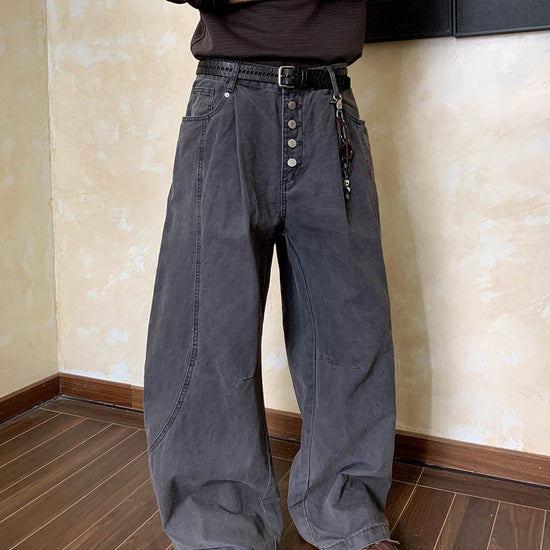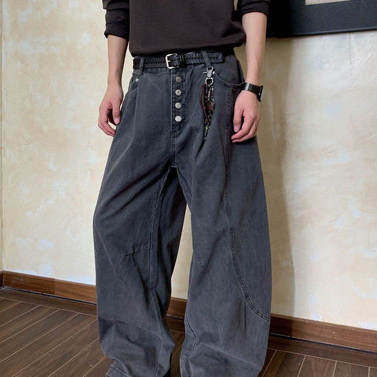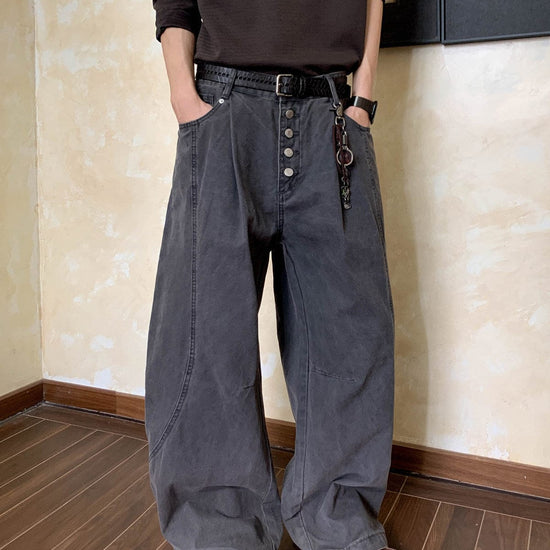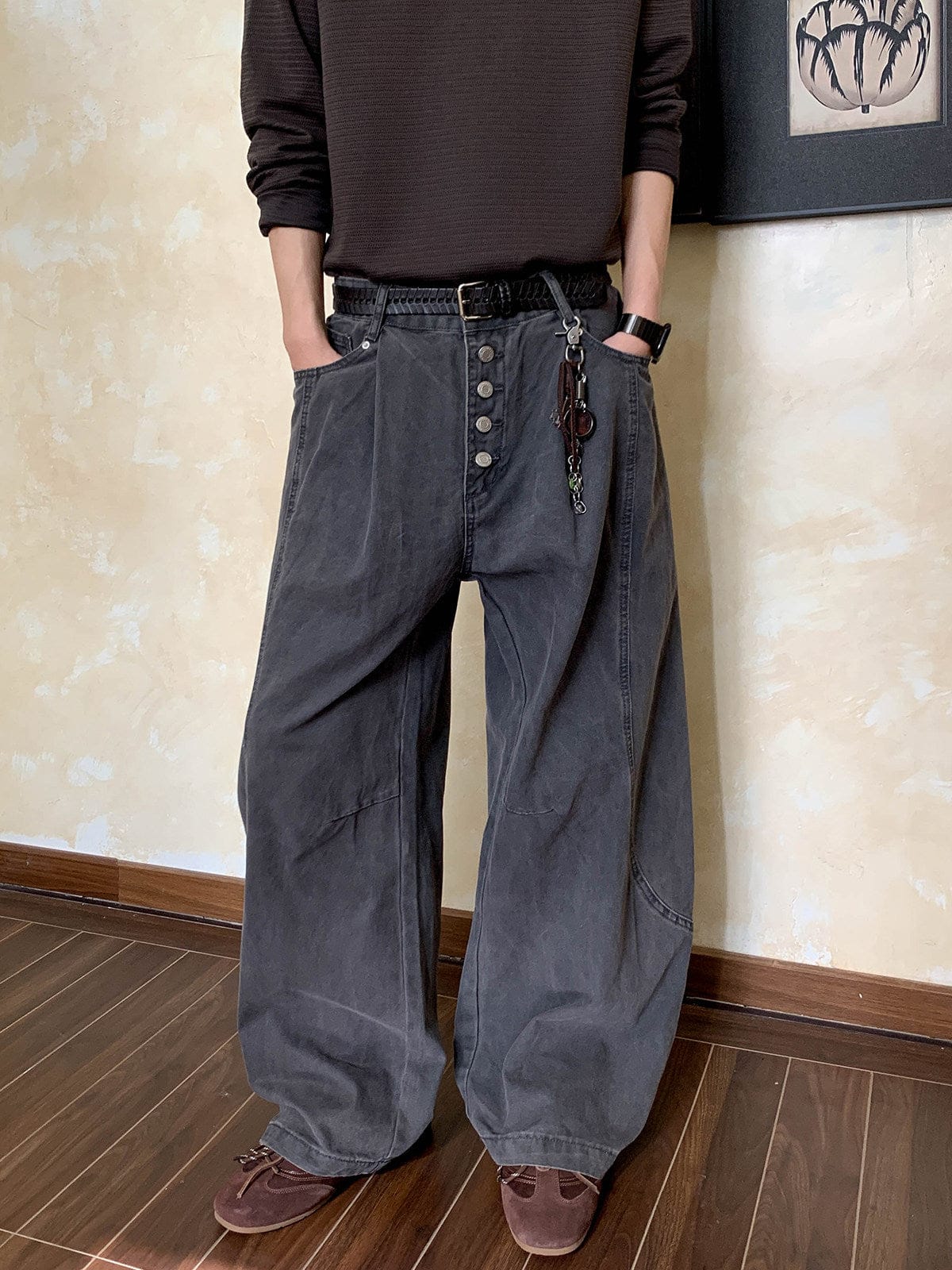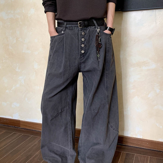 RT No. 7002 WASHED BLACK WIDE STRAIGHT DENIM JEANS