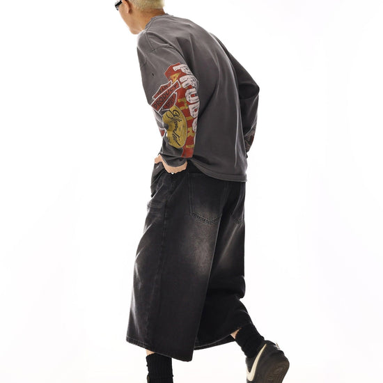 RT No. 13010 WASHED BLACK DENIM SHORT JEANS