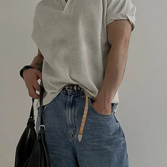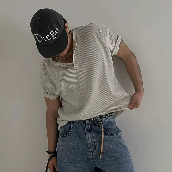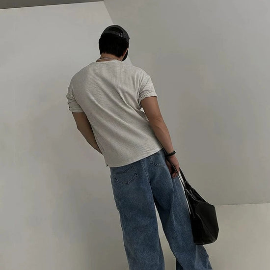 RT No. 13031 Henry Collar Short Sleeve is a versatile shirt designed for everyday wear. It features a classic Henry collar, a loose silhouette for easy movement, and short sleeves ideal for warmer days. Available in four colors to complement your wardrobe.