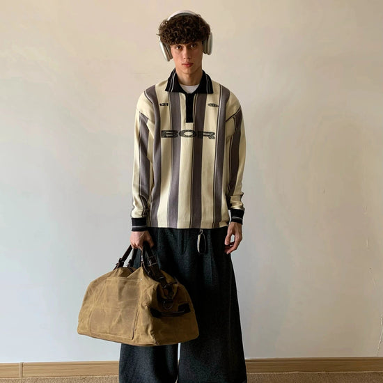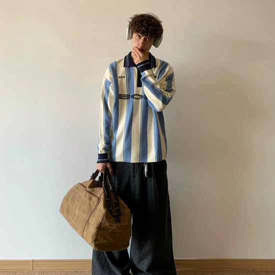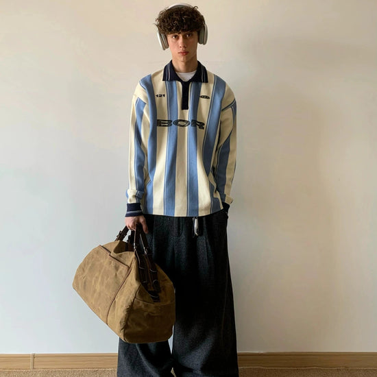RT No. 18005 SOCCER STRIPE HENLEY COLLAR SWEATER