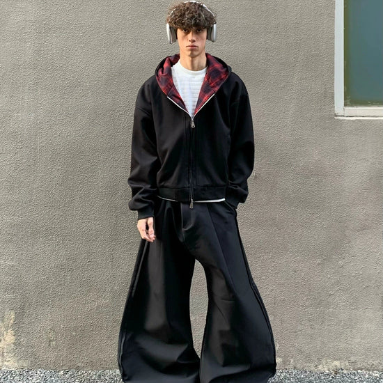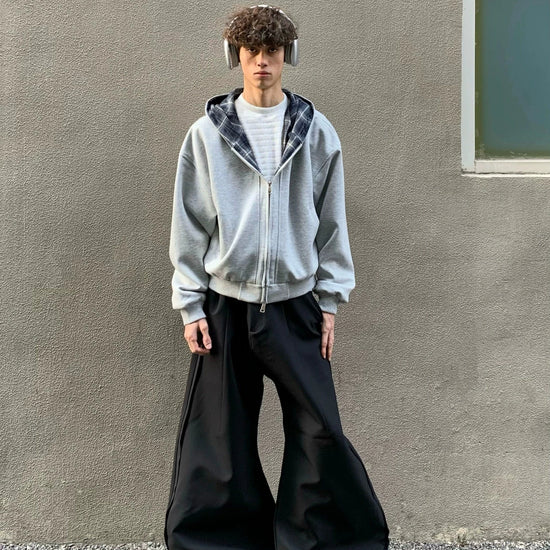 Meet RT No. 18008 PLAID ZIP HOODIE—a versatile layering piece with a zip-front, hood, and a plaid interior that adds texture and warmth to everyday outfits.