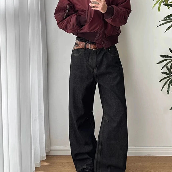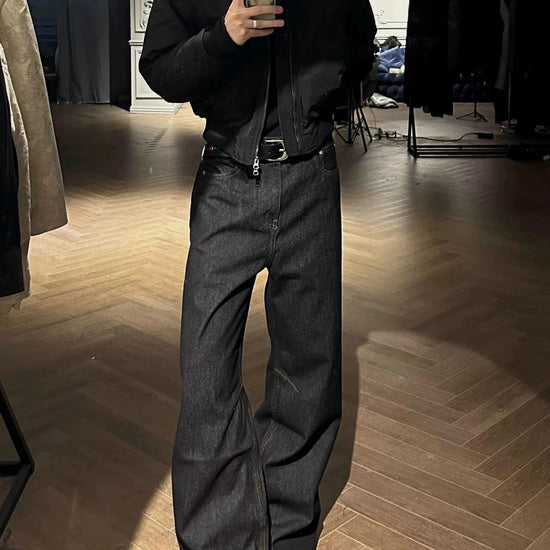 RT No. 7002 WASHED BLACK WIDE STRAIGHT DENIM JEANS