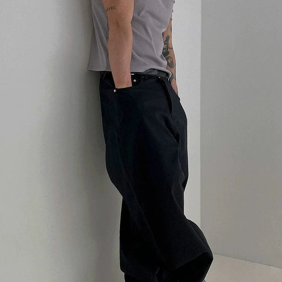 RT No. 7002 WASHED BLACK WIDE STRAIGHT DENIM JEANS
