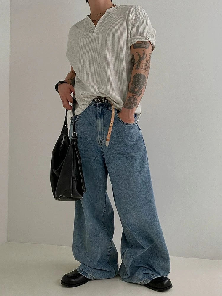 RT No. 12059 WASHED BLUE RELAX STRAIGHT DENIM JEANS