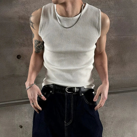 Upgrade your casual lineup with the RT No. 18278 Distressed Knit Tank Top. Featuring distressed edges and a textured knitted finish, this sleeveless style adds a subtle edge to everyday outfits.