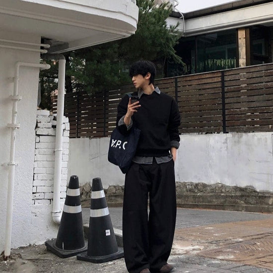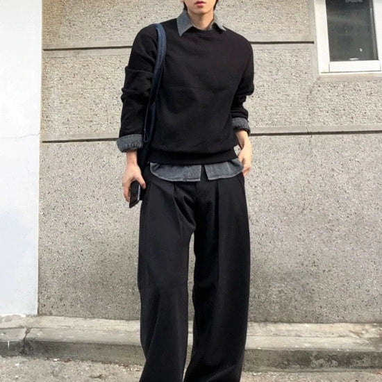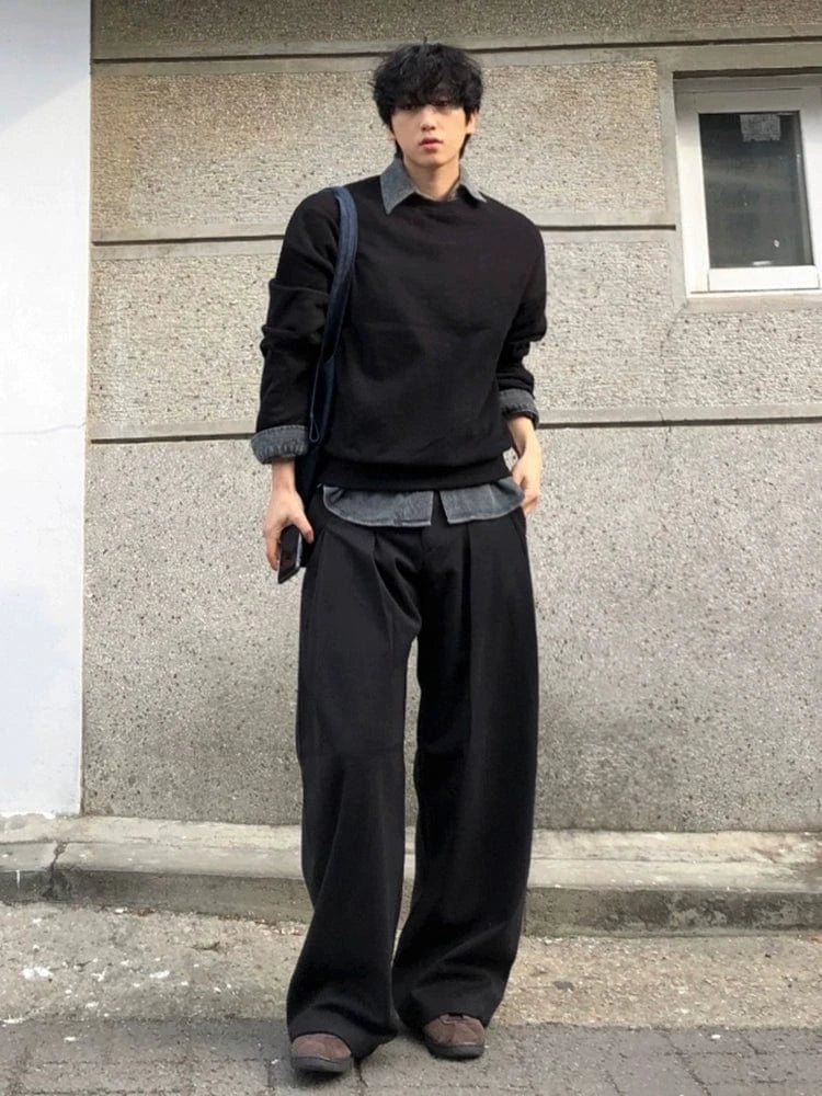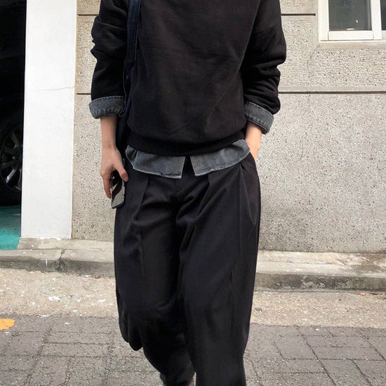 RT No. 32035 PLEATED BLACK WIDE BAGGY PANTS
