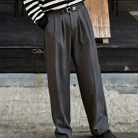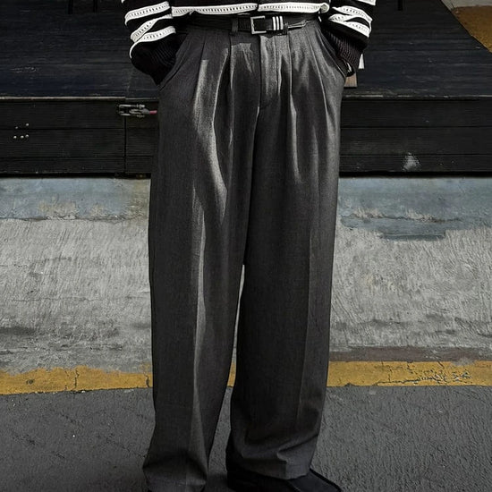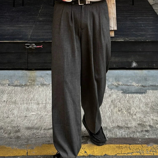 These pleated dark gray suit pants embody refined craftsmanship and enduring value. Meticulously tailored from premium fabrics, they fuse archival tailoring with modern wearability, delivering a timeless silhouette and quiet prestige that ages gracefully.
