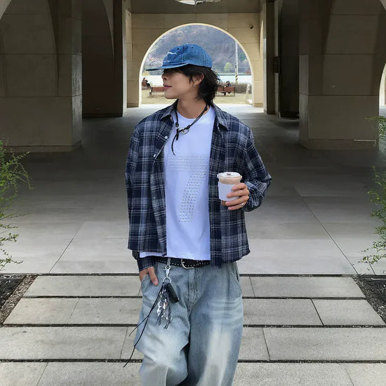 RT No. 40007 PLAID CROP SHIRT
