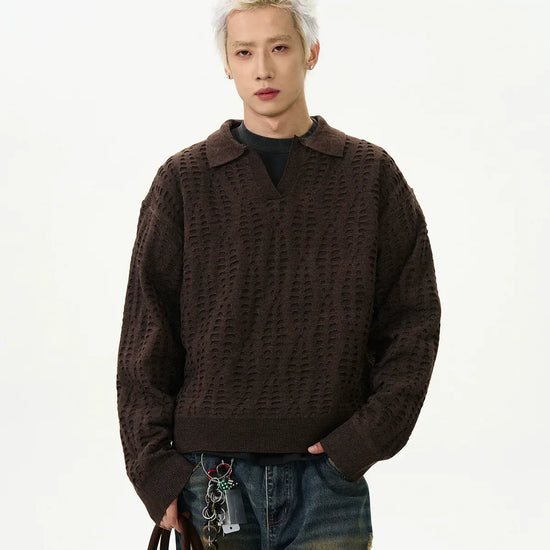 RT No. 6151 KNITTED HALF ZIP-UP COLLAR SWEATER
