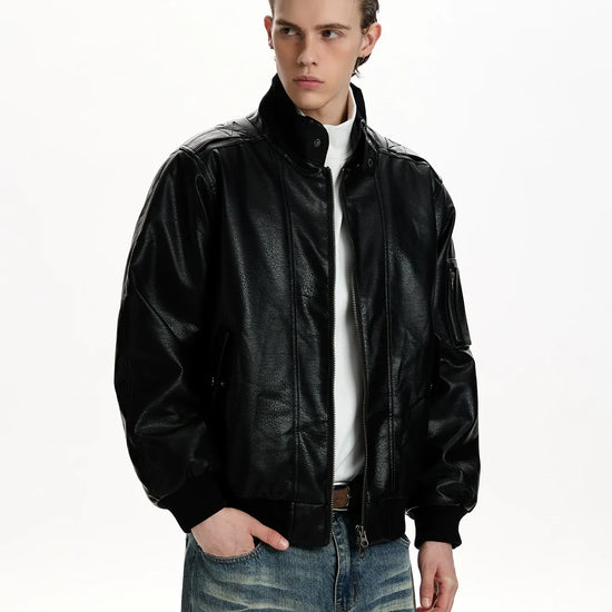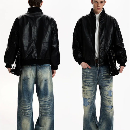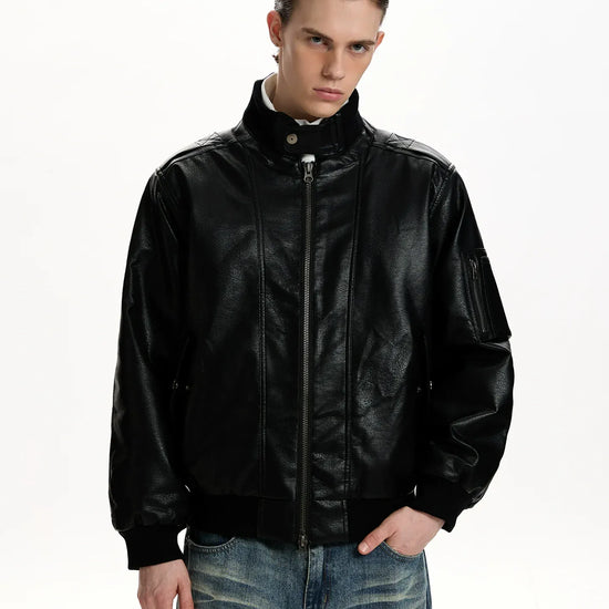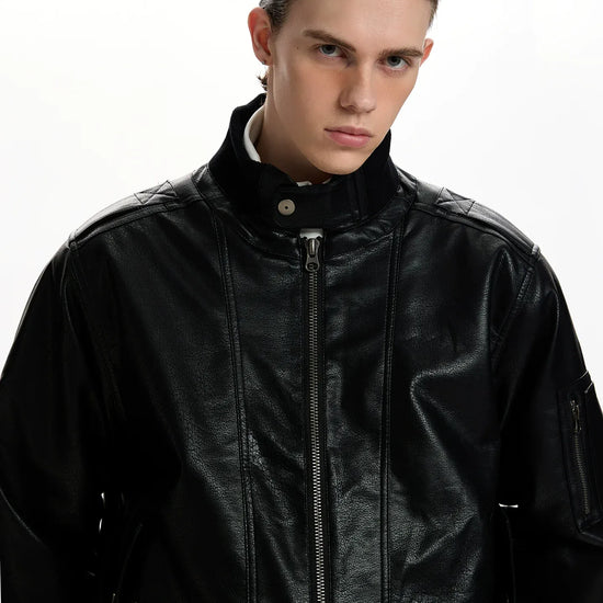 RT No. 10042 LEATHER ZIP-UP JACKET
