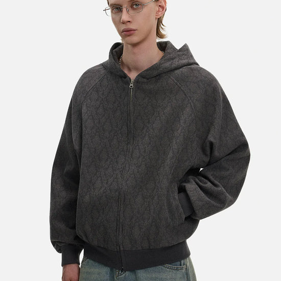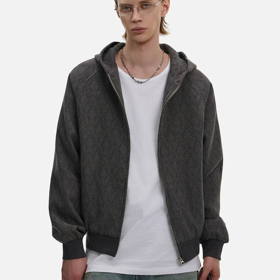 RT No. 50117 DIAMOND PATTERN ZIPPER HOODIE