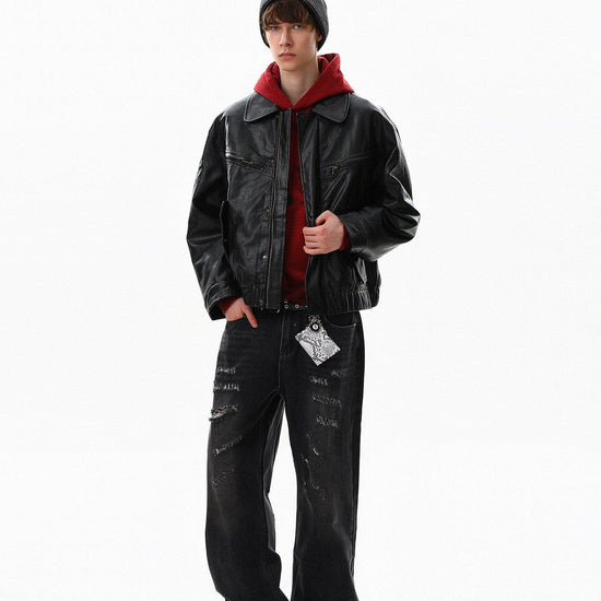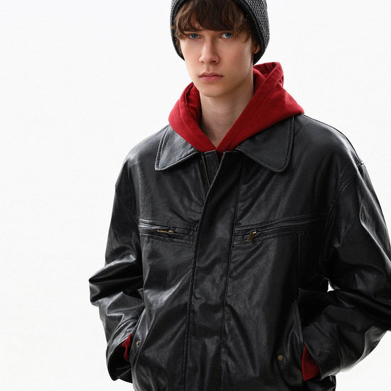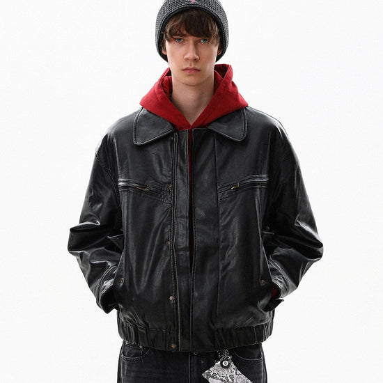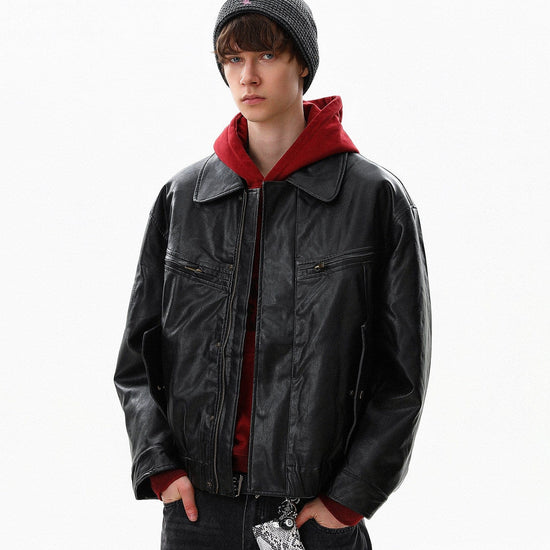 RT No. 10042 LEATHER ZIP-UP JACKET