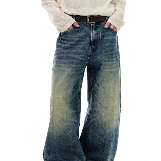 RT No. 12059 WASHED BLUE RELAX STRAIGHT DENIM JEANS