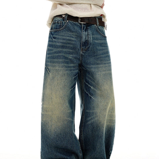 RT No. 32016 WHISKER WASH WIDE STRAIGHT JEANS