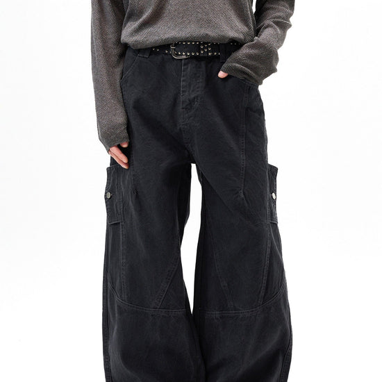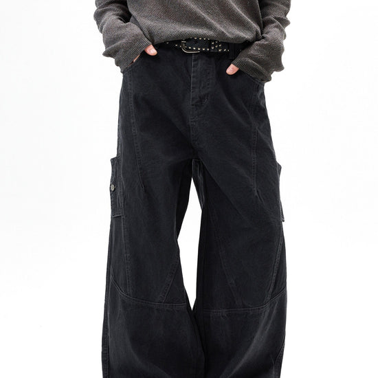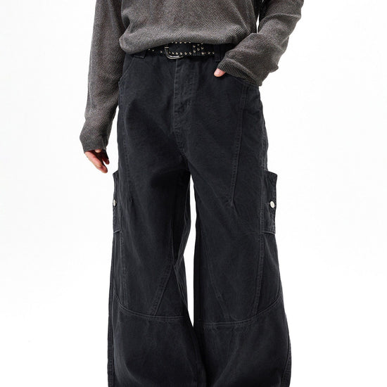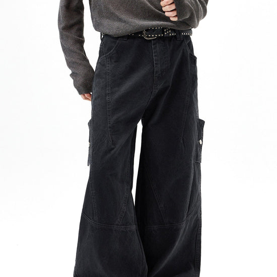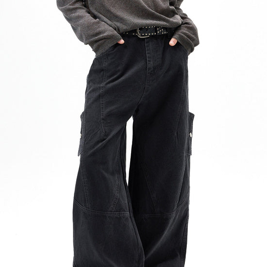 RT No. 7002 WASHED BLACK WIDE STRAIGHT DENIM JEANS
