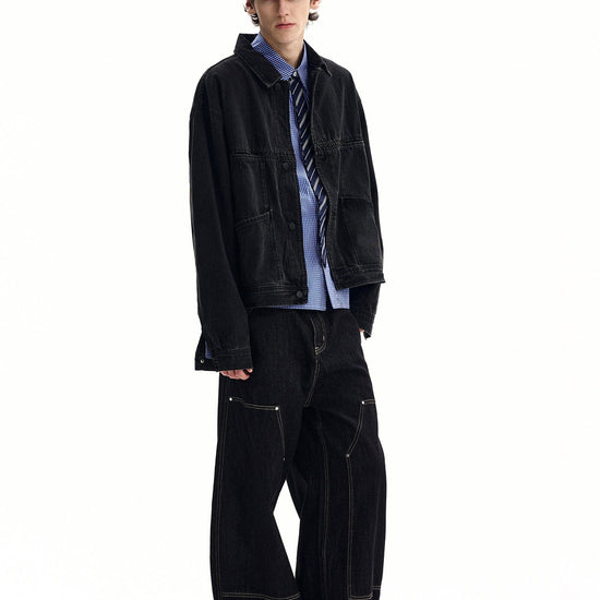 RT No. 7002 WASHED BLACK WIDE STRAIGHT DENIM JEANS