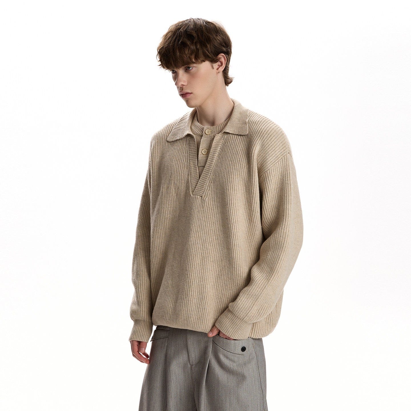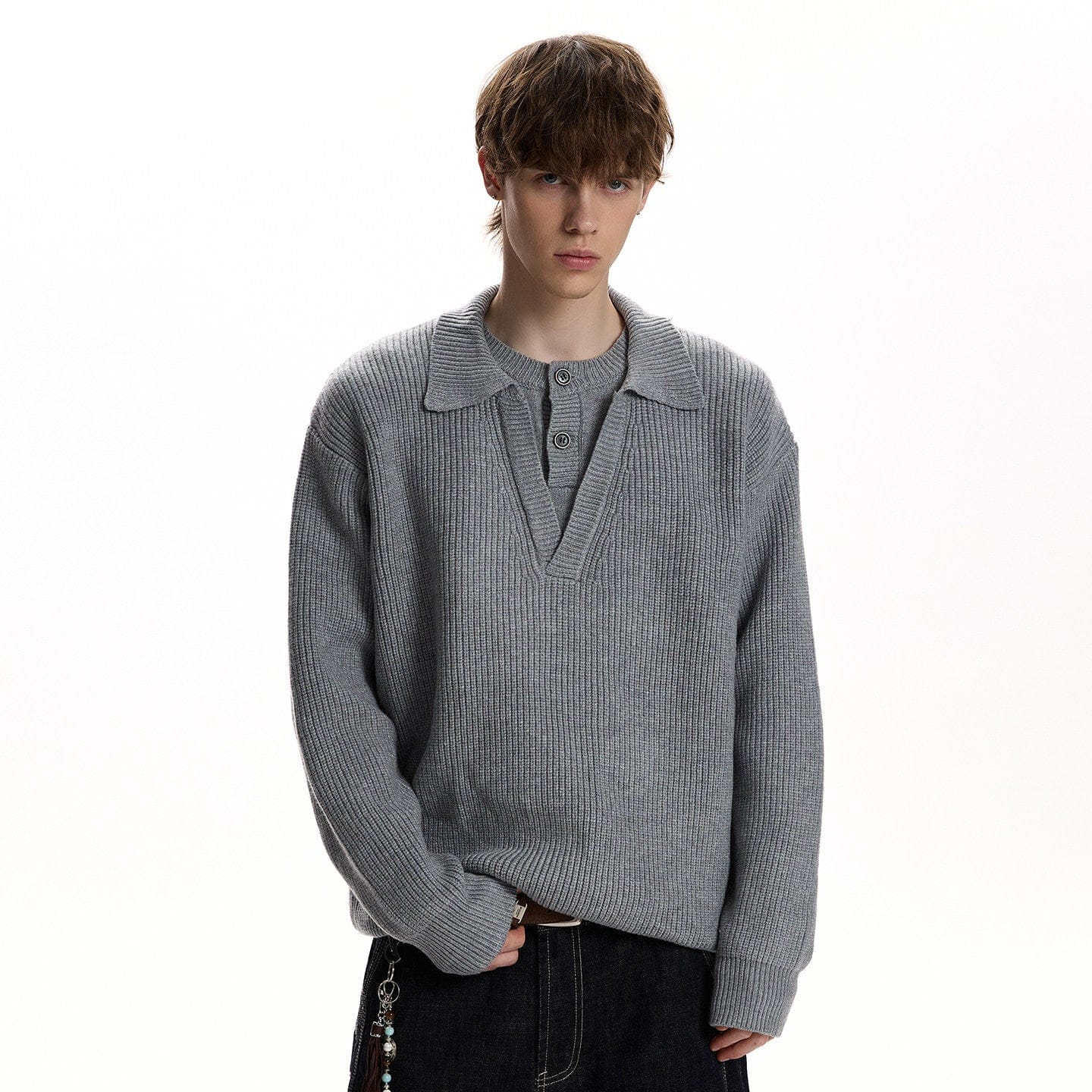 RT No. 32033 KNIT HENLEY COLLAR SWEATER